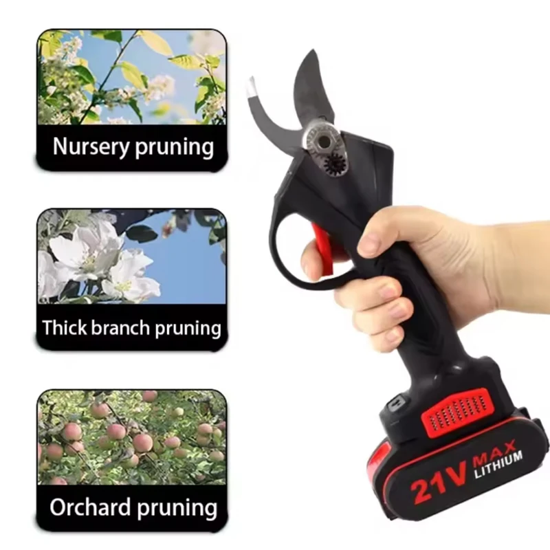 This is a kind of fine quality electric scissors, lightweight and portable, the handle is conform to human engineering design, easy to use and effort saving. Designed for cutting or trimming or less branches in fruit orchards, vineyards, and etc. Simple and easy to operate, it also has 8-10times the efficiency of traditional manual pruners. Pruning quality is significantly higher as compared to manual pruners.