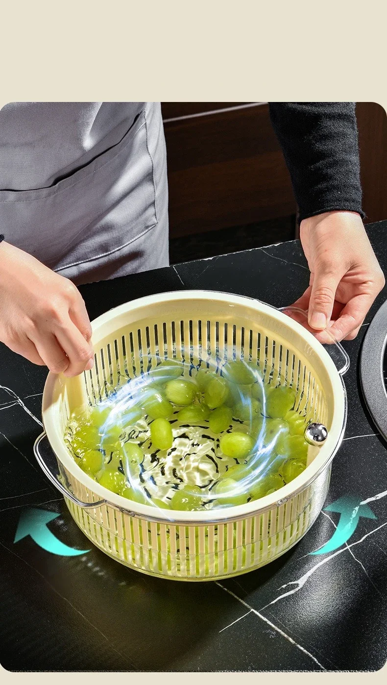 1、 Effortless Cleaning & Drying: This salad spinner simplifies washing and drying leafy vegetables with its two-in-one design. Just add greens and water, give the handle a few spins to agitate and remove dirt, then let the centrifugal force spin out excess moisture—leaving your veggies clean, crisp, and ready to eat in seconds.